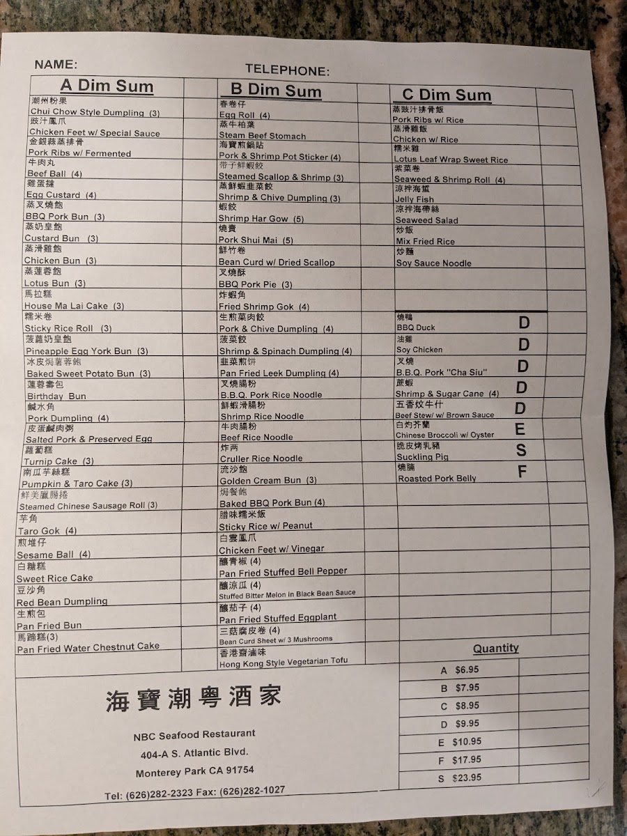 (Per Person) (Please Order in Advance)